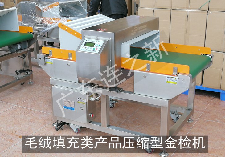 由于毛绒填充类玩具通常都具有体积较大的特点,普通检针机金属检测机的龙门高度超过20厘米,检针能力和效果都会达不到检测要求。因此,由广东连之新金属检测设备有限公司研发的轻度压缩型金属检测机(已经申请专利)可很好的解决小龙门检测大玩具、抱枕等产品的检针问题!
