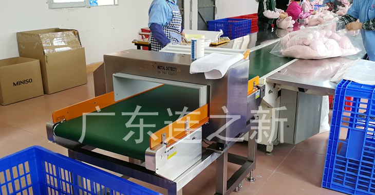 以下是源康毛绒玩具有限公司使用连新牌压缩型金属检测机使用现场:
